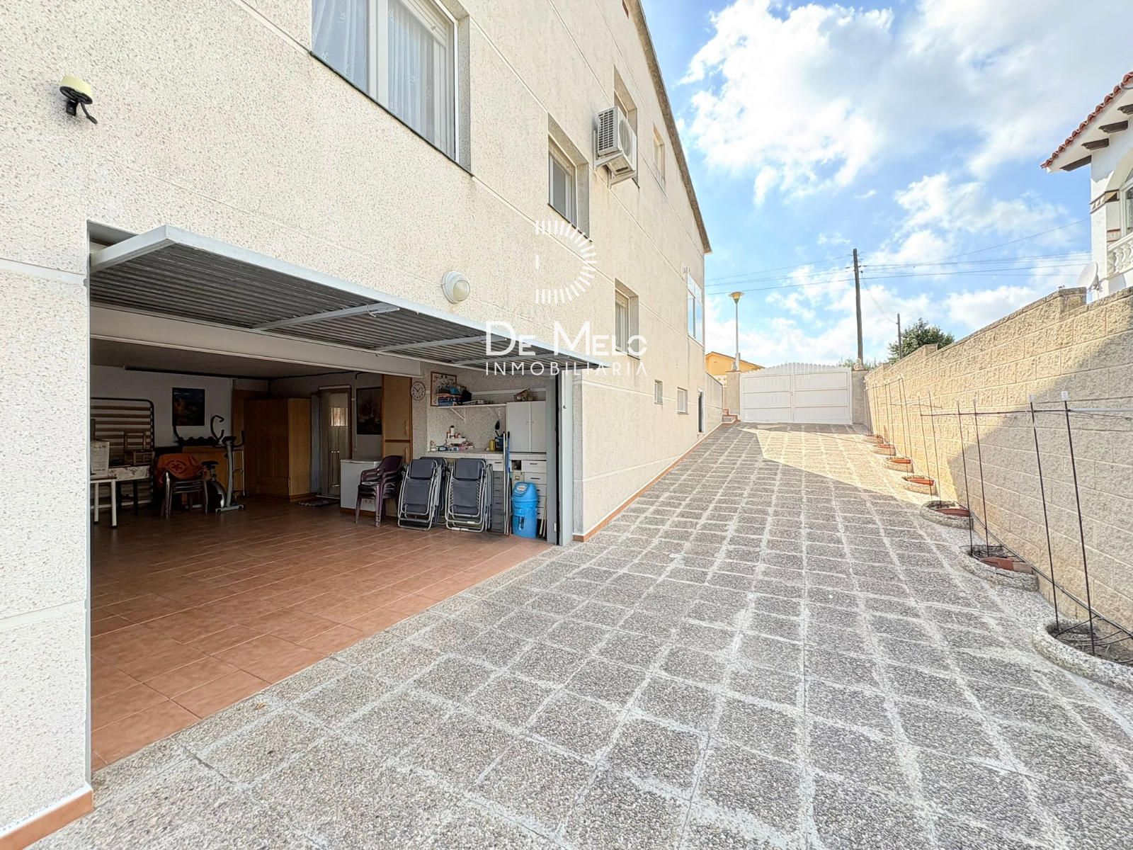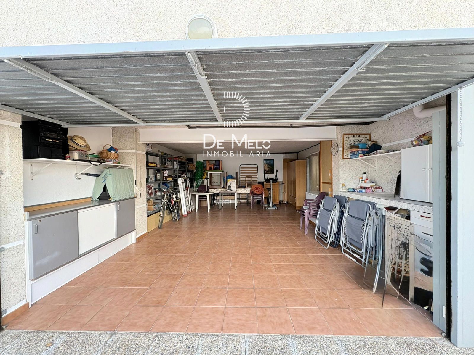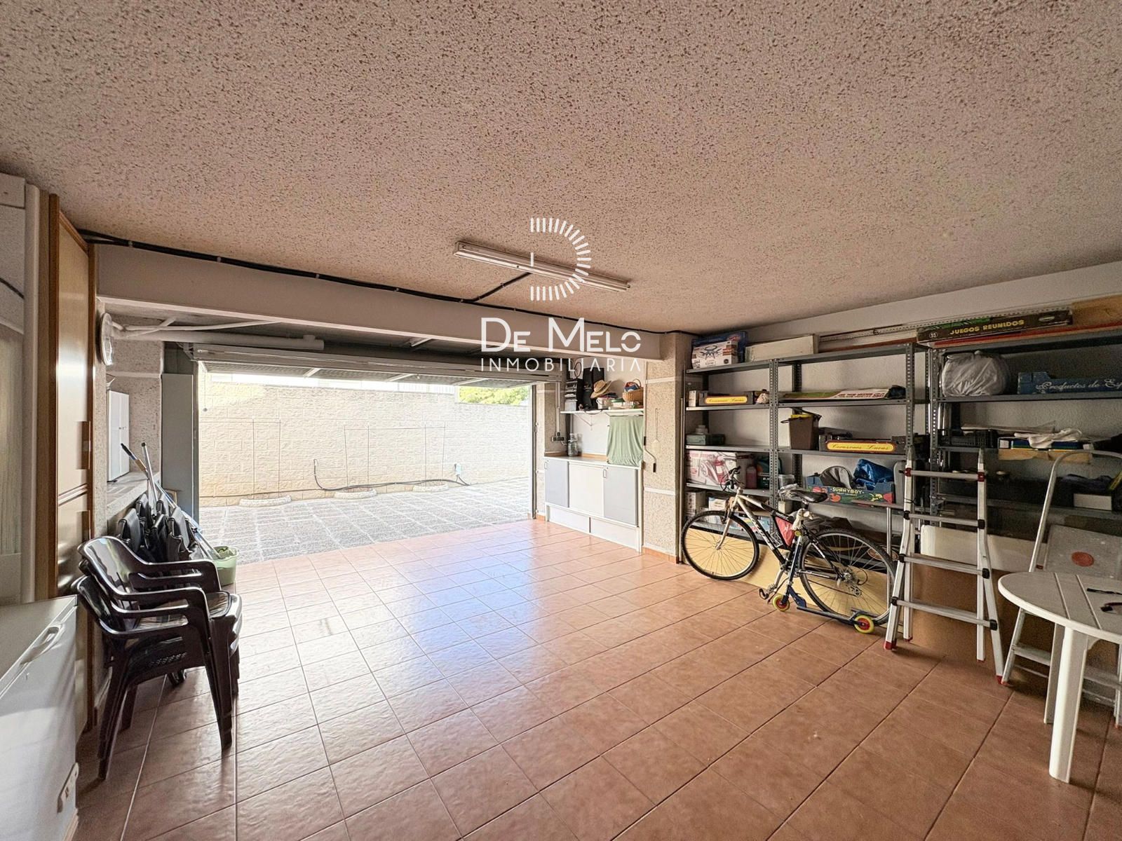 Garaje cerrado para 2 coches y, además, espacio exterior para estacionar hasta 3 vehículos más.